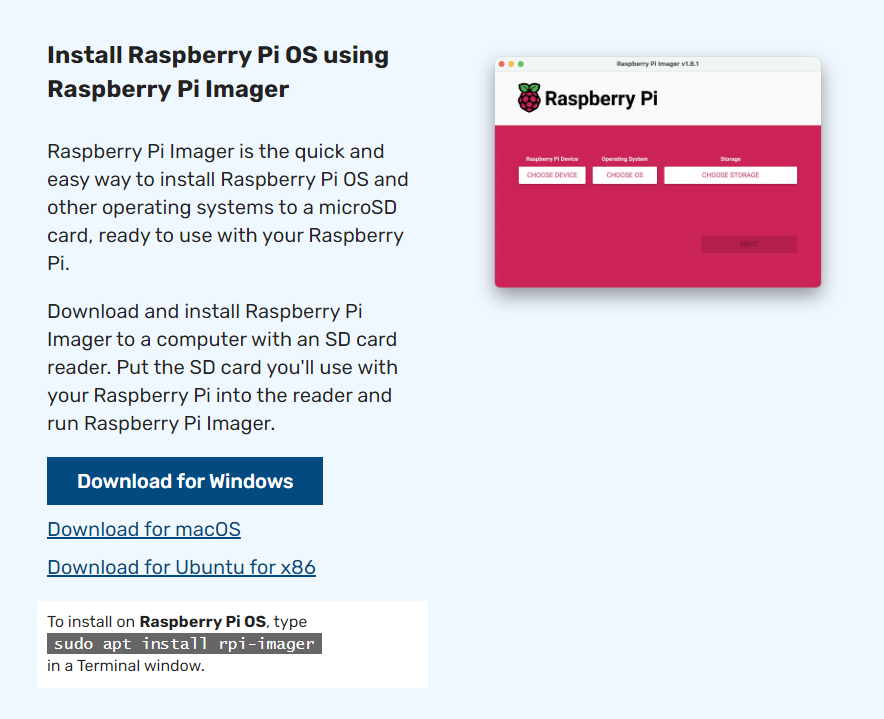 준비한 마이크로 SD카드를 SD카드 리더기에 꽂은 후 본인의 컴퓨터에 연결합니다. 인식이 제대로 되었다면 다른 작업은 하지 않고 라즈베리파이 OS 공식 사이트에서 이미지를 다운로드 해줍니다.