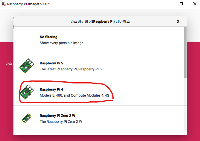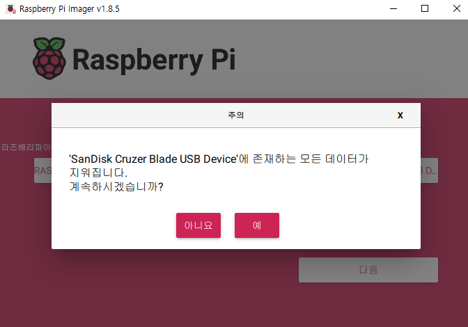제 개인 pc 운영체재는 Windows이기 때문에 Windows를 선택해서 Install을 완료하면 아래와같이 imager가 실행됩니다.