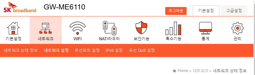 - 모뎀에 접속해서 브릿지 모드로 변경합니다.